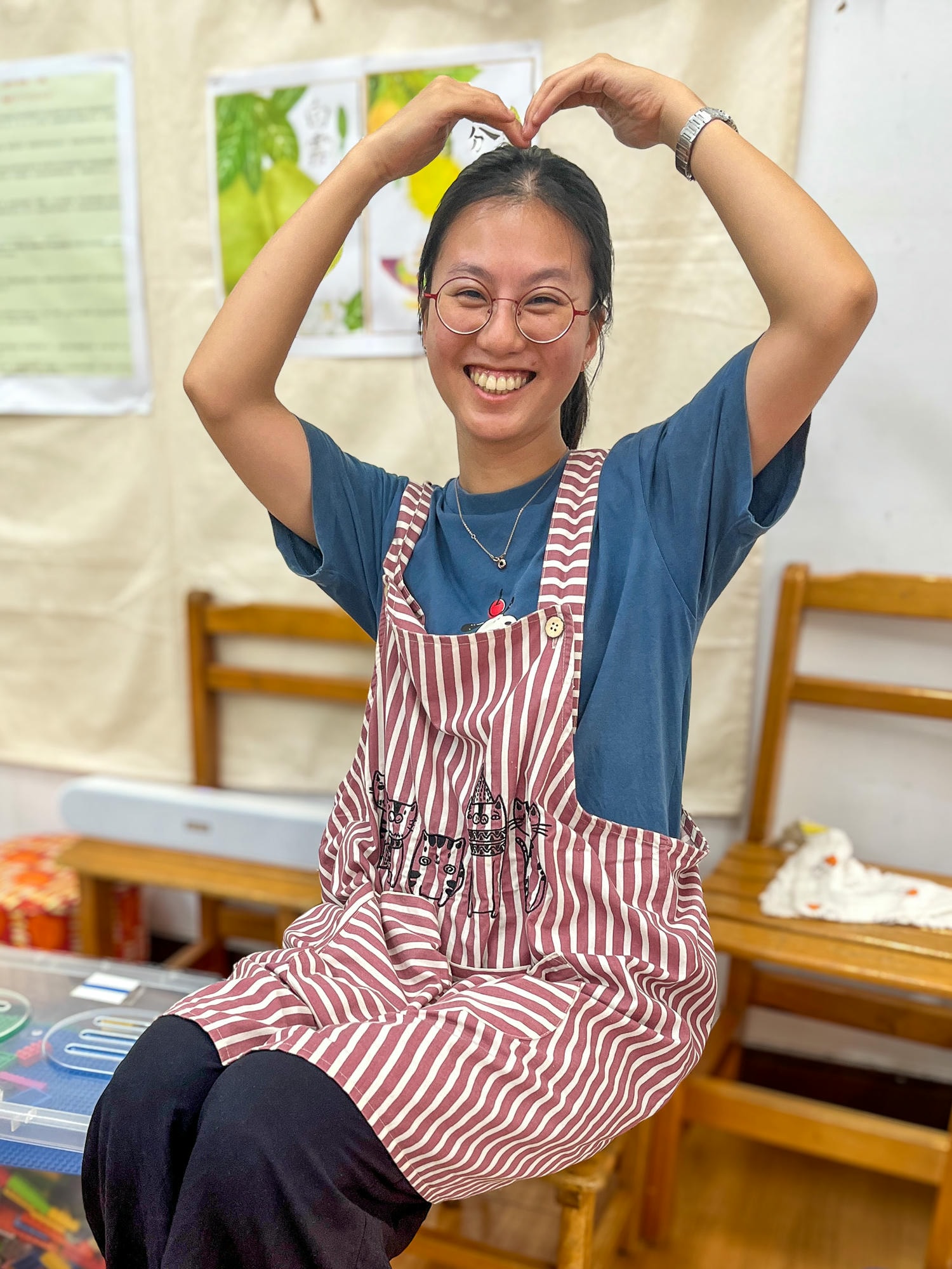 因緣際會下,接觸到蒙特梭利,如此令人平和及充滿愛的教學系統,更在孩子身上看到了無限的可能,毅然決然地投入這個神聖卻充滿挑戰的教育環境中。